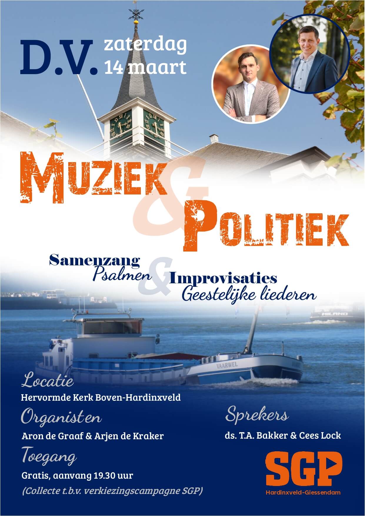 Op D.V. zaterdagavond 14 maart zal een samenzangavond plaatsvinden in de Hervormde Kerk te Boven-Hardinxveld. Deze avond wordt door SGP Hardinxveld-Giessendam georganiseerd ter afsluiting van de campagne voor de gemeenteraadsverkiezingen op D.V. woensdag 18 maart. Tijdens deze avond zullen, onder leiding van organisten Aron de Graaf en Arjen de Kraker, psalmen en geestelijke liederen worden gezongen. Sprekers zijn ds. T.A. Bakker en Cees Lock (lijsttrekker). De toegang is gratis, de avond begint om 19.30 uur. Er zal een collecte gehouden worden voor de campagne. Jong en oud van harte welkom!